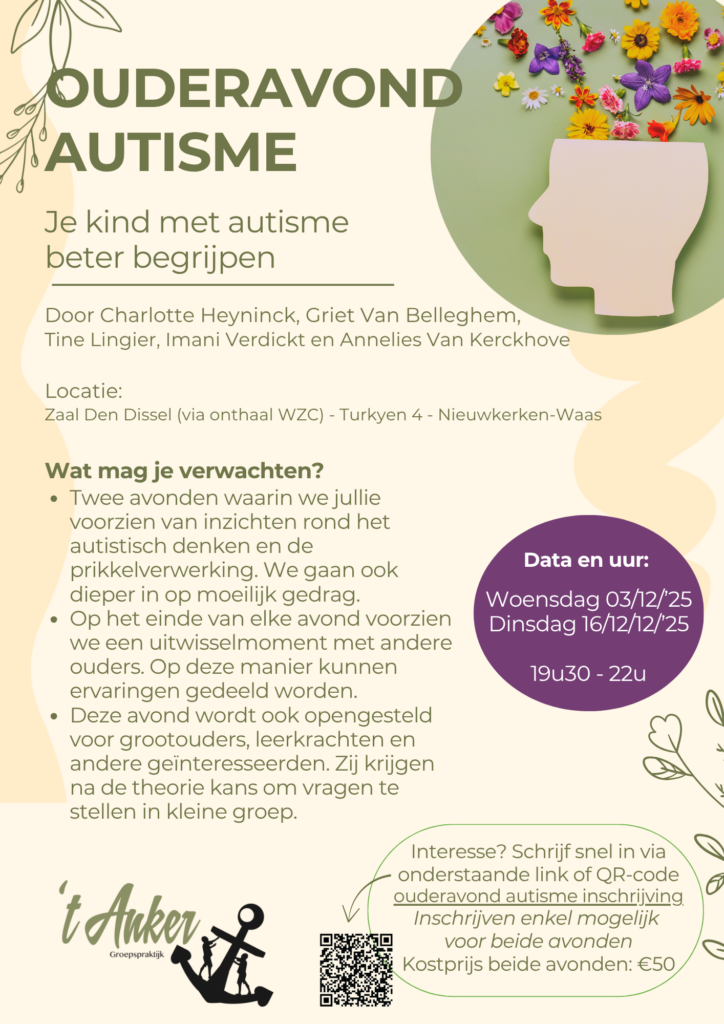 INSCHRIJVINGSFORMULIER Schakel JavaScript in je browser in om dit formulier in te vullen.Naam *VoornaamAchternaamIk schrijf in voor: mezelfmezelf en nog een persoonRelatie tot het kind van de persoon die inschrijft *ouder / grootouder/ tante/... Naam andere persoon *VoornaamAchternaamRelatie tot het kind van de andere persoon *ouder / grootouder/ tante/... Naam van het kind waarbij autisme werd vastgesteld: *Leeftijd kind: *School waarop je kind zit: *Werd reeds een diagnose gesteld? *janeeKrijgen jullie reeds begeleiding in 't Anker? *janeeE-mail *Gsm nummer *Wat zijn je verwachtingen van deze avonden?Vragen of opmerkingen: Bij op verzenden te drukken verklaar je je akkoord met (alle antwoorden aanduiden aub) *het feit dat je aanwezig zal zijn op beide avondenhet feit dat deze inschrijving definitief isdat je de betaling van 50 euro per persoon zal voldoen binnen de 5 werkdagendat je vergoeding dient te betalen bij niet betaling (10 euro administratieve kost per persoon)Verzenden12439